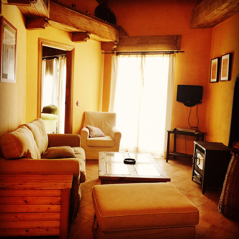 Dispone de un amplio salón con chimenea y cocina totalmente equipada (vajilla, cubertería, menaje, nevera, microondas, etc.).